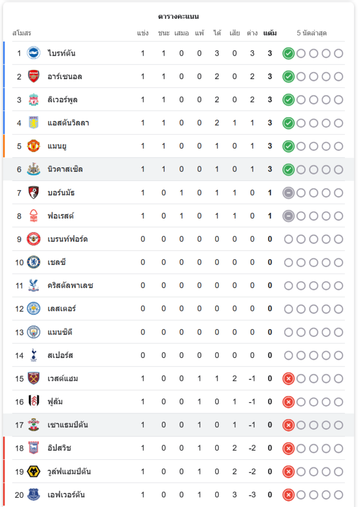 ตารางคะแนนพรีเมียร์ลีก 2024