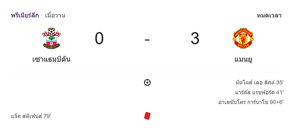 ครึ่งหลัง: แมนฯ ยูไนเต็ดคุมเกม เซาแธมป์ตันโดนใบแดง