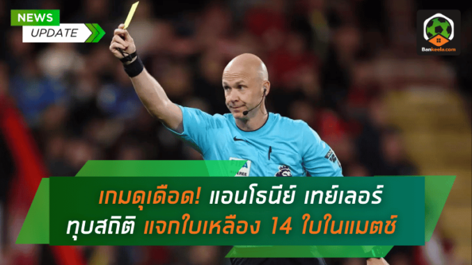 การแข่งขัน พรีเมียร์ลีก อังกฤษ เมื่อวันเสาร์ที่ 14 กันยายน ที่ผ่านมา เป็นอีกหนึ่งเกมที่ต้องจารึกในประวัติศาสตร์ เมื่อ แอนโธนีย์ เทย์เลอร์ ผู้ตัดสินคนดังของลีก สร้างสถิติใหม่ด้วยการแจกใบเหลืองมากถึง 14 ใบในแมตช์ที่ บอร์นมัธ เปิดบ้านพ่ายให้กับ เชลซี ไป 1-0 ที่สนาม ไวทาลิตี้ สเตเดี้ยม กลายเป็นเกมที่มีการแจกใบเหลืองมากที่สุดในประวัติศาสตร์ พรีเมียร์ลีก