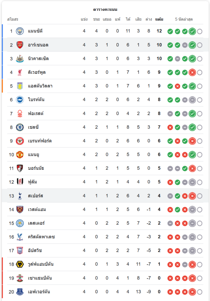 สถานการณ์ในตารางคะแนน