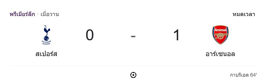 การแข่งขันฟุตบอลพรีเมียร์ลีก 2024 ในวันนี้ ท็อตแน่ม ฮ็อทสเปอร์ เปิดบ้านพบกับ อาร์เซนอล ในศึกดาร์บี้แมตช์ลอนดอนเหนือที่ทุกคนจับตามอง ผลการแข่งขันจบลงด้วยชัยชนะของ “ไอ้ปืนใหญ่” อาร์เซนอล ที่สามารถบุกมาคว้าสามแต้มสำคัญกลับบ้านได้ด้วยสกอร์ 0-1 จากประตูของ กาเบรียล มาร์ติเนลลี่ ในนาทีที่ 64