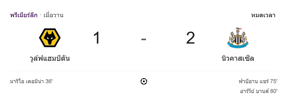 ในศึกฟุตบอลพรีเมียร์ลีก 2024 การแข่งขันระหว่าง วูล์ฟแฮมป์ตัน พบกับ นิวคาสเซิ่ล ยูไนเต็ด ผลออกมาเป็นทีมเยือน “สาลิกาดง” นิวคาสเซิ่ล ที่สามารถเอาชนะไปด้วยสกอร์ 1-2 คว้าชัยชนะสำคัญในนัดนี้