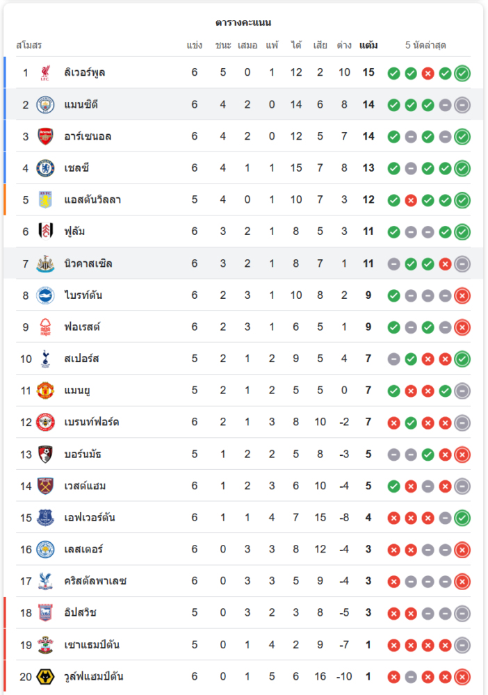 หลังจบเกมนี้ แมนเชสเตอร์ ซิตี้ ยังคงอยู่ในอันดับที่ 2 ของตารางพรีเมียร์ลีก 2024 มี 14 คะแนน จาก 6 นัด ส่วน นิวคาสเซิ่ล ยูไนเต็ด อยู่อันดับที่ 7 มี 11 คะแนน โดยทั้งสองทีมยังคงมีโอกาสลุ้นแต้มในนัดต่อไป