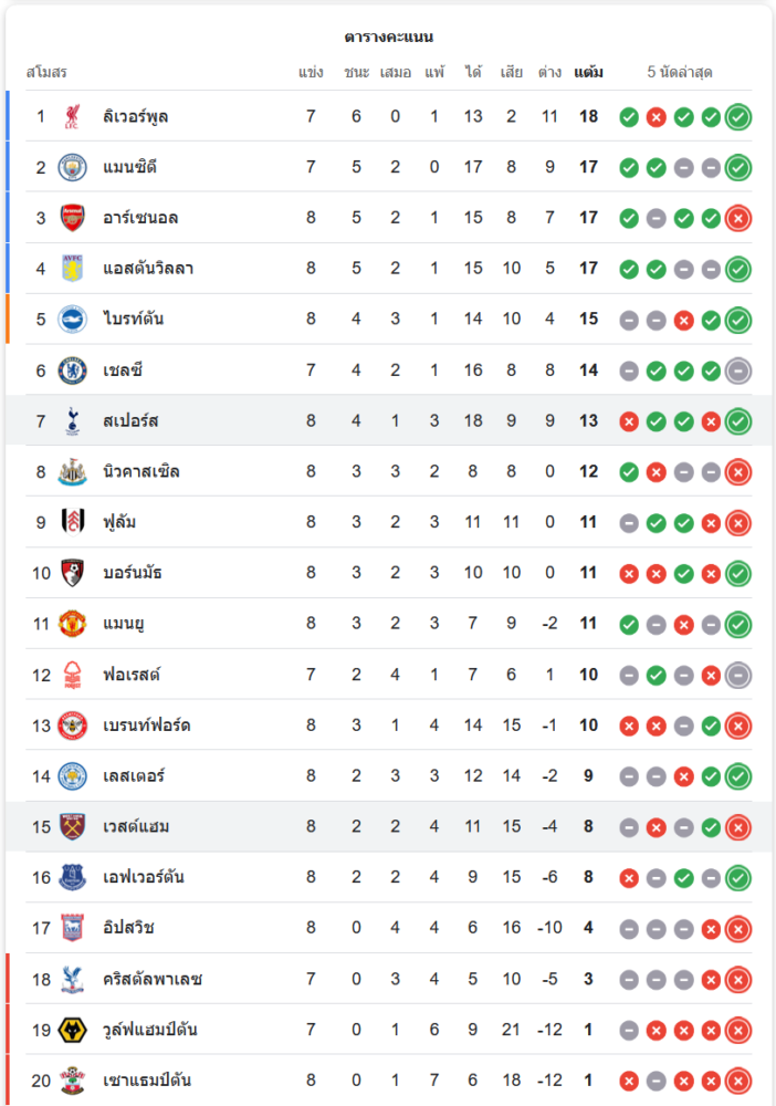 สถานการณ์ในตารางคะแนน