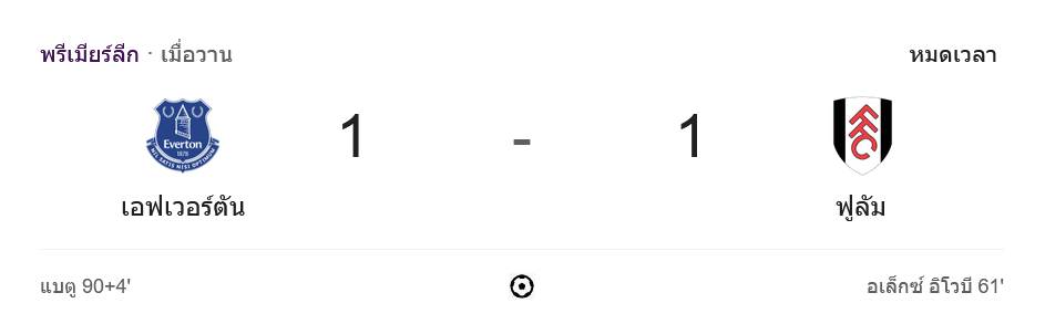 - ⚽ นาทีที่ 90+4: เบโต้ ยิงตีเสมอให้เอฟเวอร์ตันเป็น 1-1
