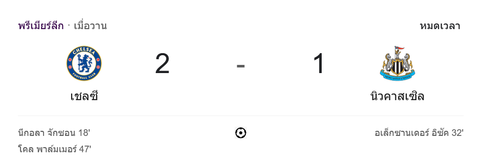 ในศึก พรีเมียร์ลีก 2024 นัดระหว่าง เชลซี และ นิวคาสเซิ่ล ยูไนเต็ด จบลงด้วยชัยชนะของเชลซีที่เฉือนชนะไปได้ 2-1 เกมนี้เต็มไปด้วยการปะทะดุเดือด และการเล่นเกมรุกที่เฉียบคมของเจ้าบ้านช่วยให้พวกเขาคว้าสามแต้มสำคัญไปได้