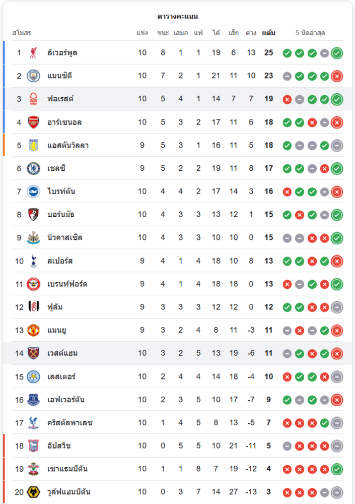 ด้วยชัยชนะนี้ น็อตติ้งแฮม ฟอเรสต์ เก็บเพิ่มเป็น 19 คะแนนจาก 10 นัด ขยับขึ้นมาอยู่ที่ 3 ของตาราง ขณะที่ เวสต์แฮม ยังอยู่ที่อันดับ 14 ด้วย 11 คะแนนจาก 10 นัด ต้องรีบปรับแผนเพื่อกลับมาคว้าชัยในนัดถัดไป