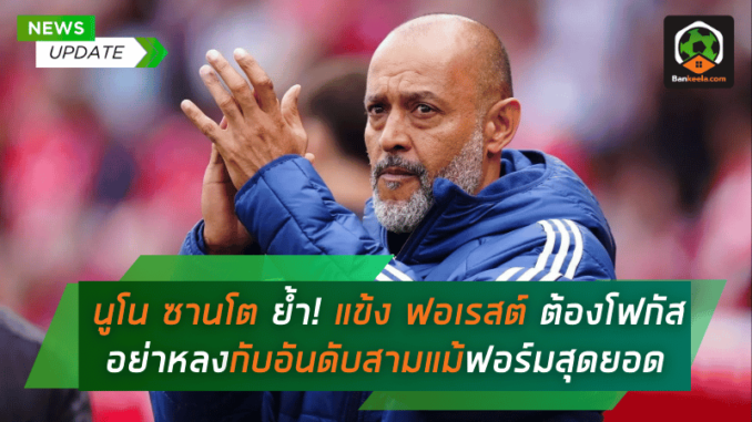 นูโน เอสปิริโต ซานโต กุนซือผู้มากประสบการณ์ของ น็อตติ้งแฮม ฟอเรสต์ ออกโรงเตือนลูกทีมหลังความสำเร็จอันยิ่งใหญ่ในเกมที่เปิดบ้านไล่ทุบ เวสต์แฮม ยูไนเต็ด 3-0 เมื่อวันเสาร์ที่ 2 พฤศจิกายนที่ผ่านมา ถึงแม้ว่าชัยชนะนัดนี้จะทำให้ ฟอเรสต์ กระโดดขึ้นมารั้งอันดับสามใน พรีเมียร์ลีก ได้เป็นครั้งแรกนับตั้งแต่ปี 1998 ซึ่งเป็นความสำเร็จที่น่าประทับใจ แต่กุนซือชาวโปรตุเกสย้ำว่าทีมต้องไม่หลงระเริงและยังคงมุ่งมั่นเดินหน้าต่อไป
