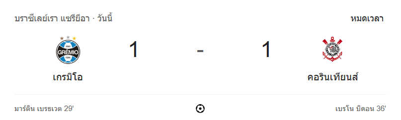 - นาทีที่ 94: Riquelme Freitas (เกรมิโอ้) ยิงไกลข้ามคาน