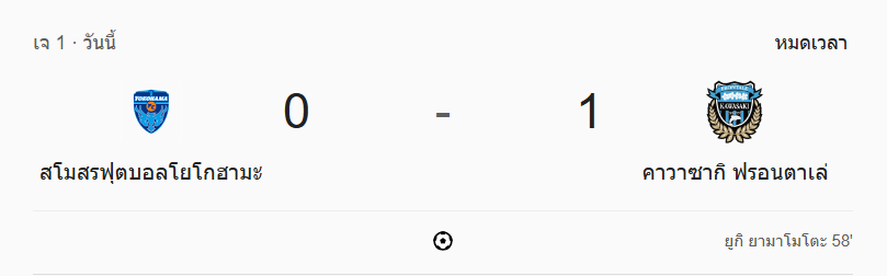 - หมดเวลา: สโมสรฟุตบอลโยโกฮามะ 0-1 คาวาซากิ ฟรอนตาเล่