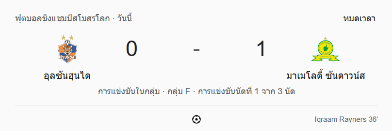 - อุลซัน ฮุนได 0-1 มาเมโลดี้ ซันดาวน์ส