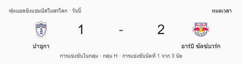 - หมดเวลา: ปาชูกา 1-2 อาร์บี ซัลซ์บวร์ก