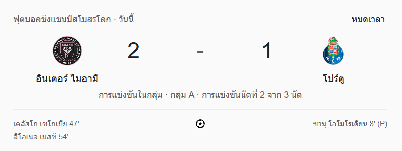 ผลบอลสด ฟีฟ่าคลับเวิลด์คัพ ชิงแชมป์สโมสรโลก ระหว่าง อินเตอร์ ไมอามี ซีเอฟ vs ปอร์โต้ วันนี้ 20/6/68 ดูบอลย้อนหลัง คลิปไฮไลท์ ดูบอล ฟีฟ่าคลับเวิลด์คัพ ชิงแชมป์สโมสรโลก