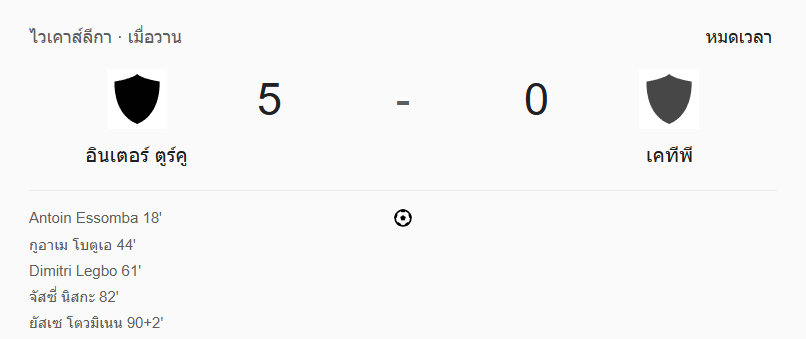 อินเตอร์ ตูร์คู ไล่ถล่ม เคทีพี ค็อตก้า 5-0 ยึดจ่าฝูงสุดโหด!