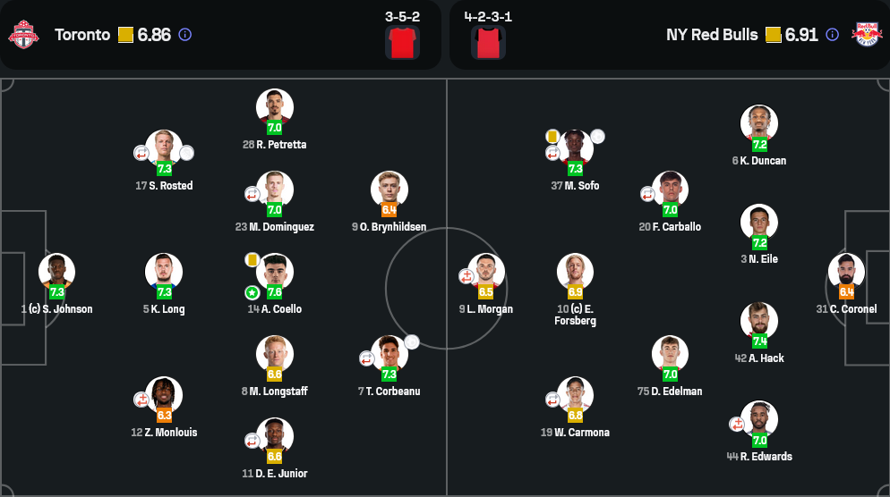 อลอนโซ่ โคเอลโล่ คว้ารางวัลนักเตะยอดเยี่ยมประจำเกมด้วยคะแนน 7.6 เขาคือจุดศูนย์กลางของแผงมิดฟิลด์โตรอนโต้ คุมจังหวะ บล็อกเกมคู่แข่ง และตัดบอลได้หลายครั้ง แม้จะไม่ได้มีชื่อบนสกอร์บอร์ด แต่การเล่นที่แน่นอนของเขาช่วยให้ทีมกลับมาสู่เกมและคุมแดนกลางในครึ่งหลังได้ดี