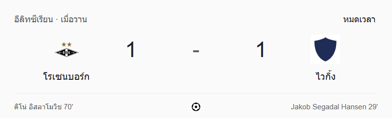 • นาทีที่ 94: จบเกม! โรเซนบอร์กเสมอไวกิ้ง 1-1 แบ่งแต้มกันไปอย่างสุดมัน