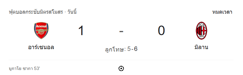 - หมดเวลา 90 นาที: อาร์เซนอล 1-0 เอซี มิลาน ต้องตัดสินด้วยจุดโทษ