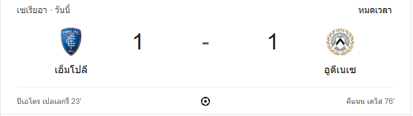 เกมนี้จบลงด้วยการแบ่งแต้มในศึกเซเรียอา โดยทั้งสองทีมได้แสดงให้เห็นถึงความแข็งแกร่งในสนาม แต่ไม่สามารถชิงความได้เปรียบจนจบเกมได้ แฟนบอลต้องรอติดตามกันต่อในนัดหน้า ว่าทั้งเอ็มโปลีและอูดิเนเซ่จะสามารถสร้างผลงานได้อย่างไรในลีก!