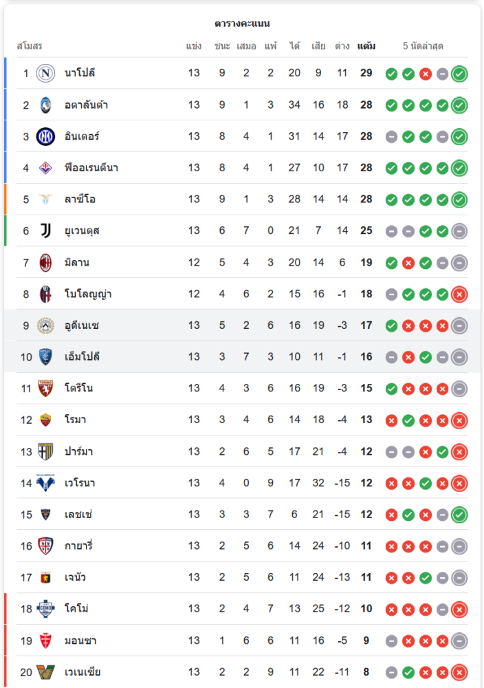 หลังเกมนี้ อูดิเนเซ่ยังคงอยู่ในอันดับ 9 มี 17 คะแนนจาก 13 นัด ส่วนเอ็มโปลีอยู่อันดับ 10 มี 16 คะแนน โดยทั้งสองทีมยังต้องเร่งเก็บแต้มในนัดถัดไปเพื่อขยับอันดับใน ตารางบอล ให้ดีขึ้น