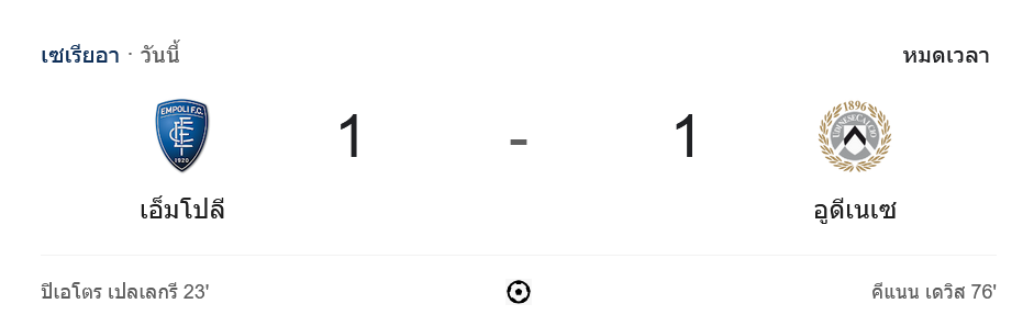 จาก : ผลบอลสด เซเรียอา 2024 ระหว่าง เอ็มโปลี 1-1 อูดิเนเซ่ วันนี้ 26/11/67 – บ้านกีฬา