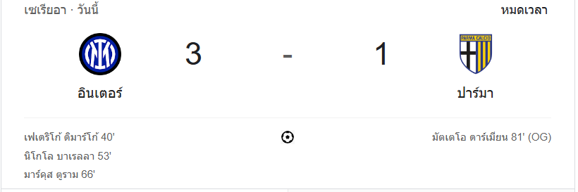 ผลบอลสด เซเรียอา 2024 ระหว่าง ทีม อินเตอร์ มิลาน vs ปาร์ม่า วันนี้ 07/12/67 ดูบอลย้อนหลัง คลิปไฮไลท์ ดูบอลเซเรียอา 2024