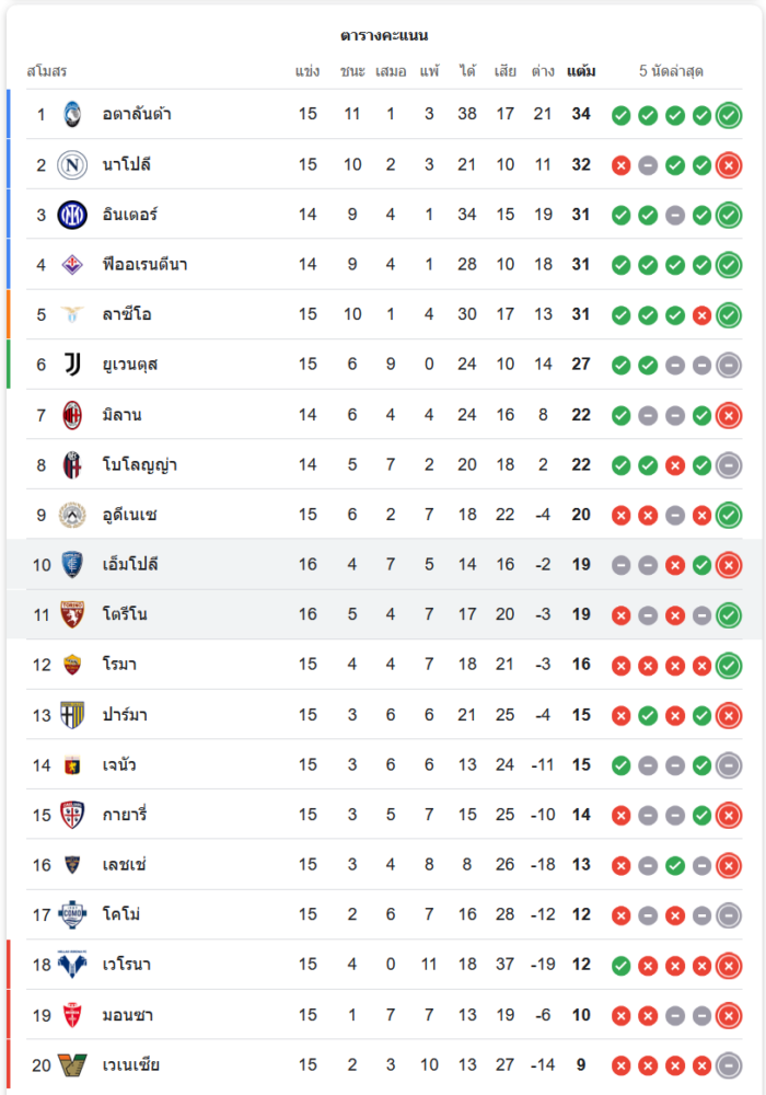 จาก : ผลบอลสด เซเรียอา 2024 ระหว่าง เอ็มโปลี 0-1 โตริโน่ วันนี้ 14/12/67 – บ้านกีฬา