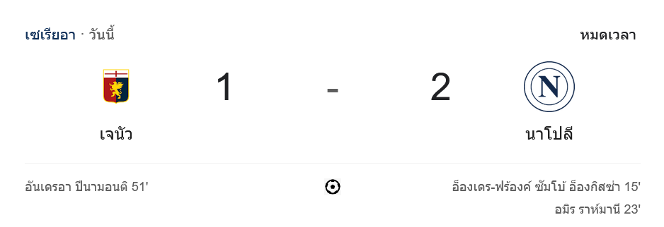 จาก : ผลบอลสด เซเรียอา 2024 ระหว่าง เจนัว 1-2 นาโปลี วันนี้ 22/12/67 – บ้านกีฬา