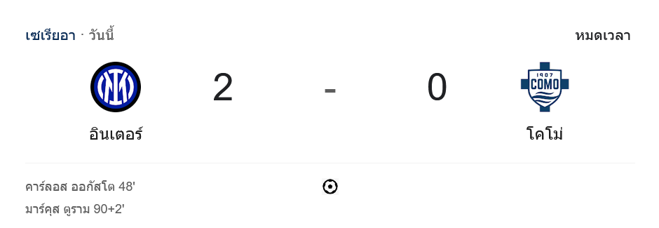 บ้านผลบอล สรุปผล ศึกเซเรียอาระอุ! อินเตอร์ มิลาน ฟอร์มดุ ไล่อัดโคโม 2-0 ทะยานลุ้นแชมป์