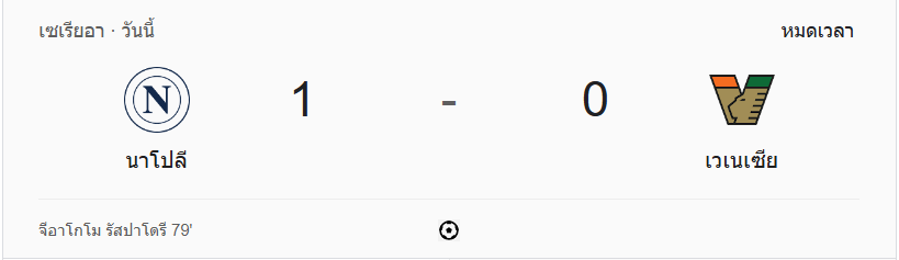 นาทีที่ 90+4: กรรมการเป่านกหวีดหมดเวลา นาโปลีเฉือนชนะเวเนเซีย 1-0