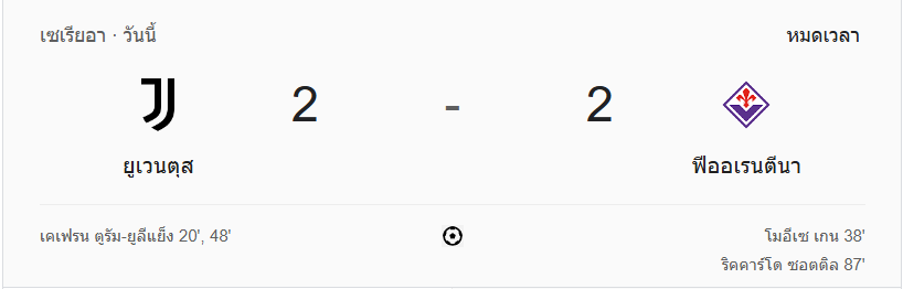 ผลบอลสด เซเรียอา 2024 ระหว่าง ทีม ยูเวนตุส vs ฟิออเรนติน่า วันนี้ 30/12/67 ดูบอลย้อนหลัง คลิปไฮไลท์ ดูบอลเซเรียอา 2024