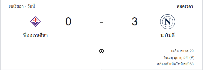 นาทีที่ 90+3: จบเกม นาโปลีบุกมาเอาชนะฟิออเรนติน่าไปอย่างขาดลอย 3-0