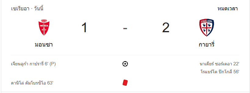 ผลบอลสด เซเรียอา 2024 ระหว่าง ทีม มอนซ่า vs กาญารี่ วันนี้ 5/1/68 ดูบอลย้อนหลัง คลิปไฮไลท์ ดูบอลเซเรียอา 2024