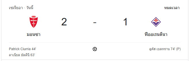 นาทีที่ 96: จบเกม Monza ชนะ Fiorentina ด้วยสกอร์ 2-1