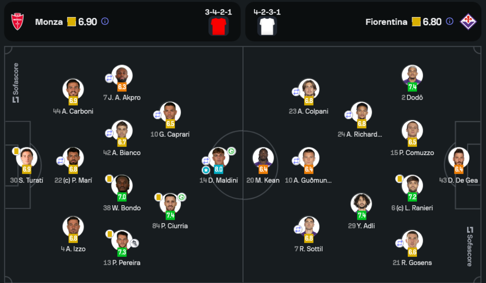 มอนซาใช้ระบบ 3-4-2-1 เน้นเกมรับแน่นและสวนกลับเร็ว แผนนี้สร้างปัญหาให้ฟิออเรนตินาโดยเฉพาะการโจมตีจากด้านข้างผ่าน เปโดร เปเรย์รา ฟิออเรนตินามาในระบบ 4-2-3-1 แต่การส่งบอลในแดนสุดท้ายยังขาดความเฉียบขาด แม้จะครองบอลมากถึง 66% แต่มอนซามีความเด็ดขาดในจังหวะยิงมากกว่า ทำให้ผลบอลสดจบลงด้วยชัยชนะของเจ้าบ้าน