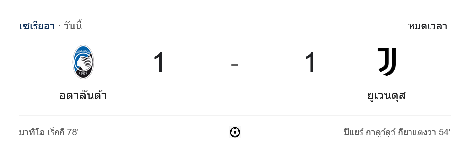 จาก : ผลบอลสด เซเรียอา 2024 ระหว่าง อตาลันต้า 1-1 ยูเวนตุส วันนี้ 15/1/68 – บ้านกีฬา