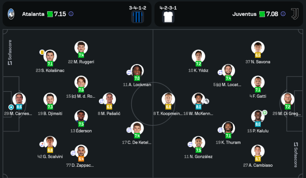 มาร์โก คาร์เนเซคชี่ ผู้รักษาประตูของอตาลันต้า เซฟลูกยิงสำคัญหลายครั้ง พร้อมคุมเกมรับได้อย่างยอดเยี่ยม ได้คะแนนสูงถึง 8.6