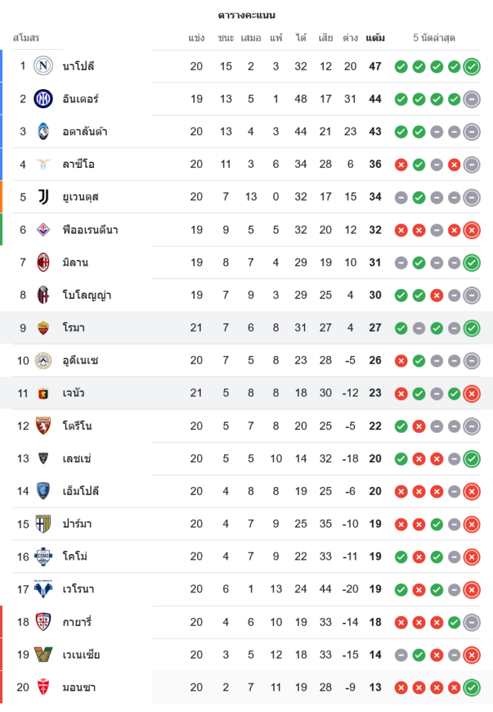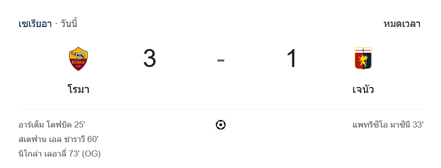 จาก : ผลบอลสด เซเรียอา 2024 ระหว่าง เอเอส โรม่า 3-1 เจนัว วันนี้ 18/1/68 – บ้านกีฬา