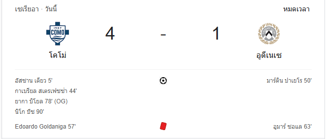 รายงานการแข่งขัน: โคโม่ 4-1 อูดิเนเซ่