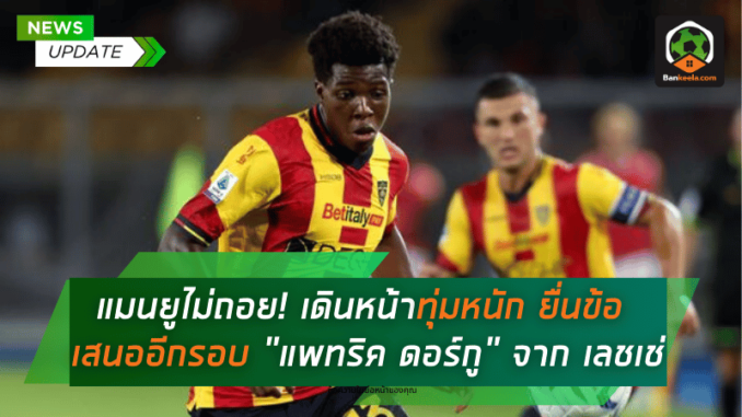 แมนเชสเตอร์ ยูไนเต็ด แสดงความมุ่งมั่นแบบไม่มีถอยในภารกิจคว้าตัว แพทริค ดอร์กู แบ็กซ้ายดาวรุ่งของ เลชเช่ ล่าสุดจัดการยื่นข้อเสนอใหม่ที่มีมูลค่าสูงขึ้นเกินกว่า 30 ล้านยูโร (ประมาณ 1,050 ล้านบาท) หวังปิดดีลให้สำเร็จ หลังจากข้อเสนอรอบแรกถูกปฏิเสธ