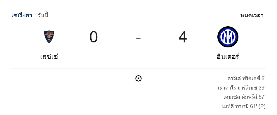 จาก : ผลบอลสด เซเรียอา 2024 ระหว่าง เลชเช่ 0-4 อินเตอร์ มิลาน วันนี้ 27/1/68 – บ้านกีฬา