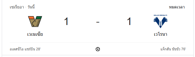 นาทีที่ 93: เวเนเซียได้ฟรีคิกจากจังหวะฟาวล์ของดานิเอเล กีลาร์ดีในแดนหน้า แต่จังหวะต่อเนื่องยังไม่มีการทำประตูเพิ่ม