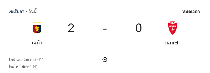 จาก : บ้านผลบอล สรุปหลังเกม เจนัว เปิดบ้านอัด มอนซ่า 2-0 ขยับขึ้นกลางตาราง เซเรียอา 2024! – บ้านกีฬา