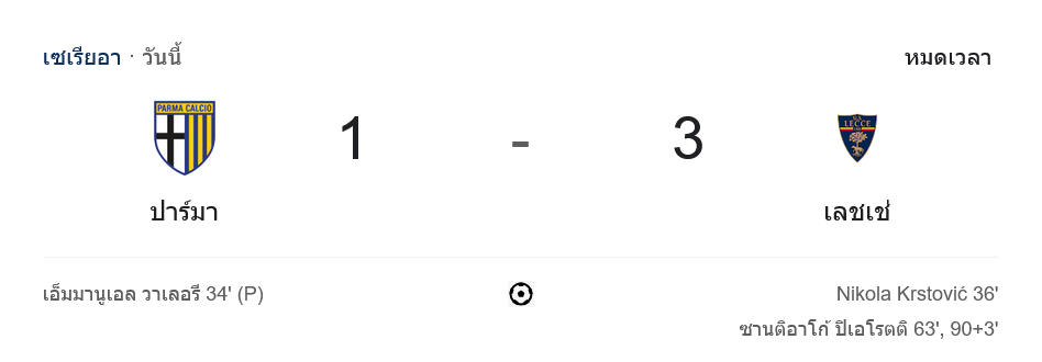 จาก : ผลบอลสด เซเรียอา 2024 ระหว่าง ปาร์ม่า 1-3 เลชเช่ วันนี้ 1/2/68 – บ้านกีฬา