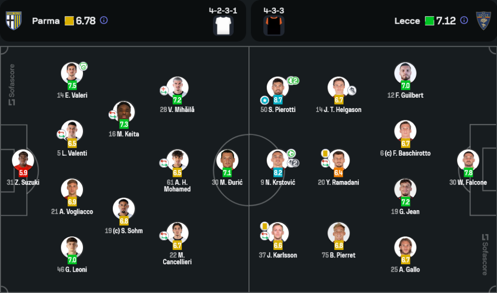 - ซานติอาโก้ ปิเอร็อตติ (เลชเช่) – ทำสองประตูสำคัญในเกมนี้ พร้อมคว้าตำแหน่ง Player of the Match ด้วยคะแนนสูงถึง 8.7