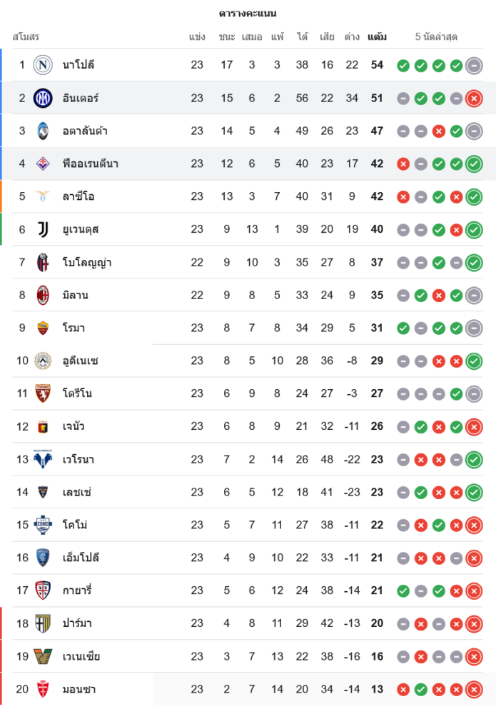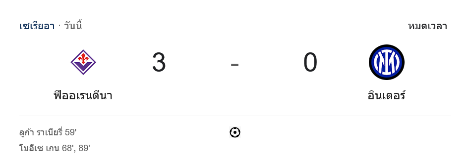 จาก : ผลบอลสด เซเรียอา 2024 ระหว่าง ฟีออเรนตีนา 3-0 อินเตอร์ มิลาน วันนี้ 7/2/68 – บ้านกีฬา