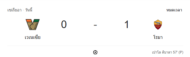 - นาทีที่ 96 กรรมการเป่านกหวีดจบเกม เวเนเซียแพ้โรม่า 0-1