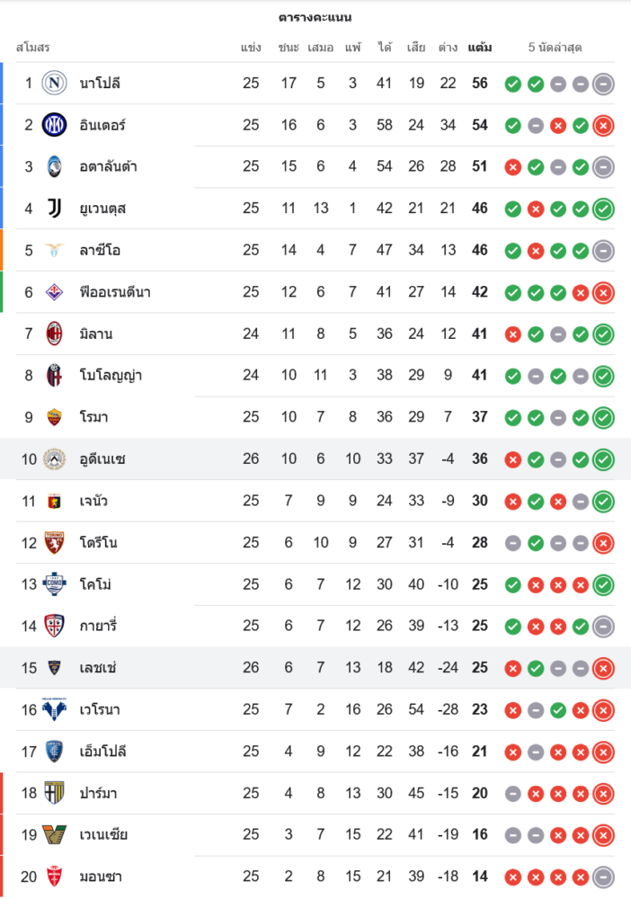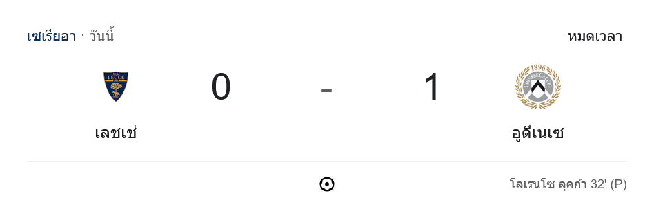 จาก : ผลบอลสด เซเรียอา 2024 ระหว่าง เลชเช่ 0-1 อูดิเนเซ่ วันนี้ 22/2/68 – บ้านกีฬา