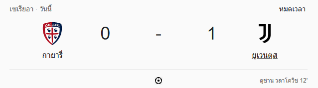 ยูเวนตุส บุกมาเฉือน กาญารี่ 1-0 จากประตูโทนของ ดูซาน วลาโฮวิช แม้ว่าเจ้าบ้านจะพยายามเร่งเครื่องในครึ่งหลัง แต่แนวรับของม้าลายยังแข็งแกร่ง ทำให้พวกเขารักษาสกอร์นำและเก็บชัยชนะกลับตูรินได้สำเร็จ!