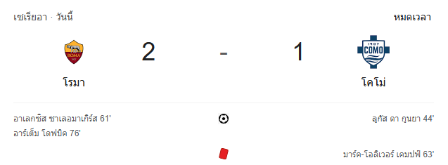 - นาทีที่ 47 กรรมการเป่าหมดครึ่งแรก โรมา 0-1 โคโม่