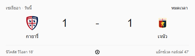 รายงานการแข่งขัน: กายารี่ 1-1 เจนัว